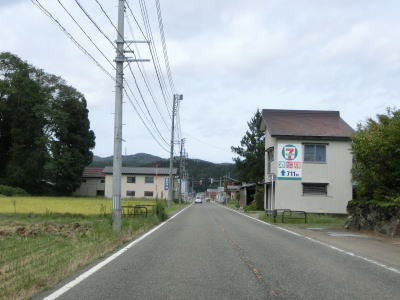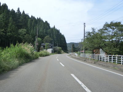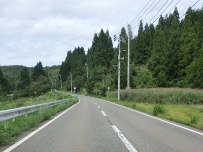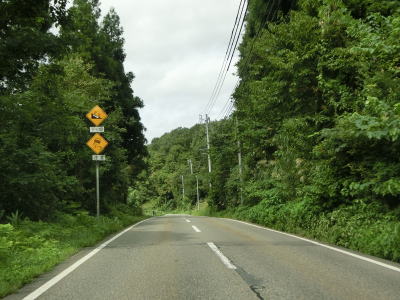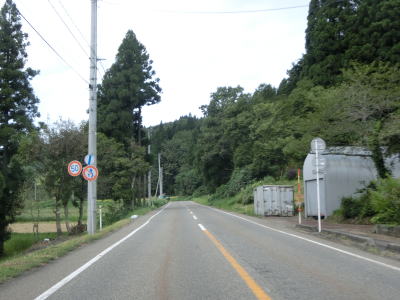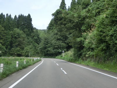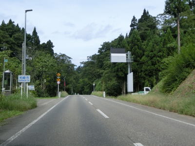 | 桜町トンネルからは長岡市の旧小国町域をゆっくりと下って行く。沿線の集落もなくひたすら下って行くだけである。2〜3km南にR403が並走する形で小国隧道で小千谷市と旧小国町を結んでいるが、こちらは冬季には閉鎖される区間であり、それ以外も災害で通行止になる事が多い。走行した日(2021年9月13日)も災害のため通行止であった。集落に差し掛かると同時に平坦になり、新潟r357上栗交差点を通過する。 | ||