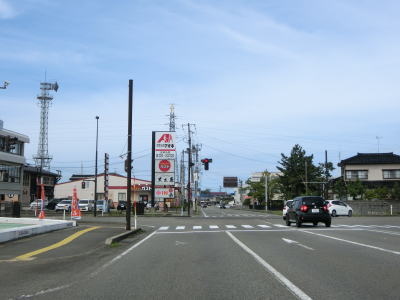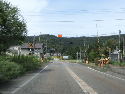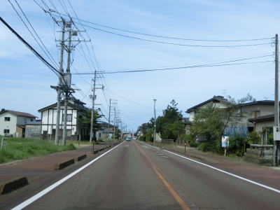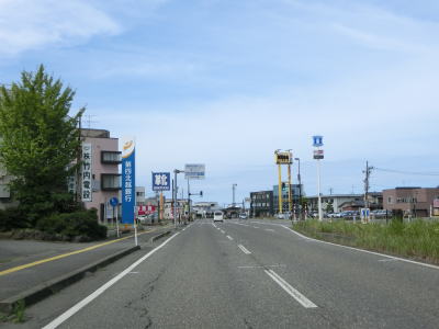 | 家屋が密集した中を走っているとR252鳥越交差点に突き当たる。案内標識にR291のおにぎりは表記されていないが、右折してR252との重複区間をR8・柏崎方面に向かう。ここから終点の交差点までは全てR252に重複している。 鳥越交差点からは交通量が増大する。歩道のない2車線道路のため若干の走りにくさを感じる。新潟r116安田駅前交差点を通過した後に緩やかな右カーブを曲がりながら新潟r73安田交差点を通過する。 |