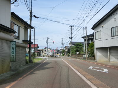 | 平坦な直線道路を走っているとR404七日町交差点を通過する。約3.5km南にR404とR403相野原交差点がある。七日町交差点のすぐ先に昭和橋が架かっているが、センターライン付きの2車線道路ではあるものの車線幅が狭く橋上で大型車両の離合ができない。橋を渡ると新潟r11が交差している左カーブを曲がり、その先で新潟r171武石交差点を通過する。 | ||