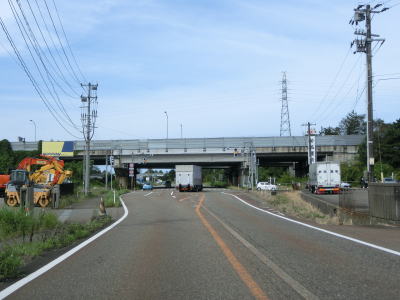| 安田交差点からも2車線道路が続いているが、歩道が設置されているため多少なりとも走りやすくなる。車線が増えて片側2車線道路になると同時にE8北陸道の田尻橋をくぐる。ランプ橋の両田尻橋の下で柏崎ICへの側道が分岐する。 | ||