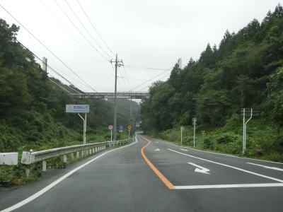 | 栃木r163交差点を通過して緩やかな勾配を上っていると那須烏山市に入る。市境のすぐ先に跨道橋が架かっているが、これは国道に隔てられたゴルフ場内を行き来するための橋である。 | ||