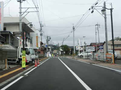 | 田町大橋付近からは工事中ではなくなるが、これはバイパスが別ルートで造られているためである。現在の田町大橋の上流に(仮称)新田町大橋が建設中である。田町大橋を渡って以降はセンターライン付きの2車線道路ではあるもののアップダウンと急カーブがある。谷筋ではあるものの沿線に家屋が建ち並んでいるためこの区間を拡幅で対応するのは難しいように思える。 | ||
