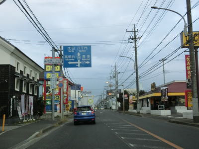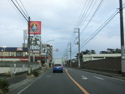 | 八千代市役所の南で千葉r262市役所入口交差点を通過する。r262は市役所方面の北ではなく南の幕張方面に延びている。さらに少し走ると千葉r201交差点を通過する。r201は停車場線であり、その先に京成本線の京成大和田駅がある。r201交差点から離れると緩やかな下り勾配となるが、狭苦しい2車線道路という点に変化はない。 | ||