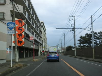 | 千葉県船橋市の南東に位置するR14宮本町交差点がR296の終点であり、千葉県の北部を横断する形で太平洋に面した匝瑳市に向かう。宮本町交差点は信号機のある交差点とない交差点の2ヶ所に別れており、西側の信号機付きはR14東京・市川方面と、東側の信号機なしはR14木更津・千葉方面と接続している。よって、千葉方面から来た場合の左折は信号機のない交差点を、東京方面から来た場合の右折は信号機付きの交差点から進入する。東京方面から進入した場合は道なりに走るだけだが、千葉方面から進入した場合は直後の交差点を左方向へ進む。 | ||
