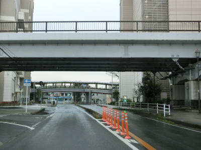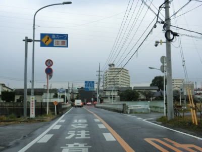 | 印旛放水路(新川)に架かる大和橋を渡ると緩やかな上り勾配となり、緩やかな右カーブと左カーブの先でR16下市場交差点を通過する。立体交差点でありR16の下市場跨道橋が交差点の上を越えている。 | ||
