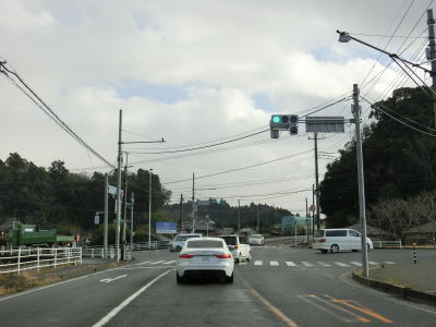 | 染井交差点からはバイパスとなるため車線幅が広く歩道も設置されているため非常に走りやすくなる。緩やかな左カーブを曲がっていると千葉r79広沼交差点を通過して多古町の中心部の南を走る。 | ||