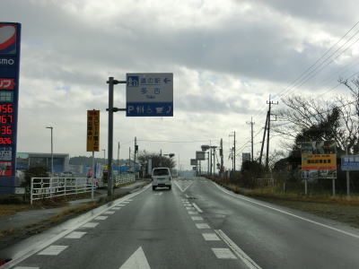 | 千葉r74道の駅多古交差点を通過するが、交差点の名称が示す通り道の駅「多古」が隣接している。登録路線はR296だが、国道に面した部分に車両用の出入口は設けられておらず僅かながらr74を通らなければならない。南にある第二駐車場はR296との出入りが可能だが、トイレすらもない未舗装の駐車場である。 道の駅の直後に多古大橋で栗山川を渡って平坦な直線道路を走り、借当川を曲目橋で渡ると匝瑳市に入って東総広域農道との交差点を通過する。匝瑳市に入ってからも平坦な走りやすい2車線道路が続いている。 |