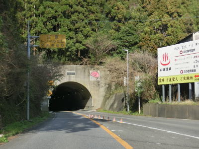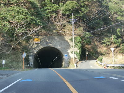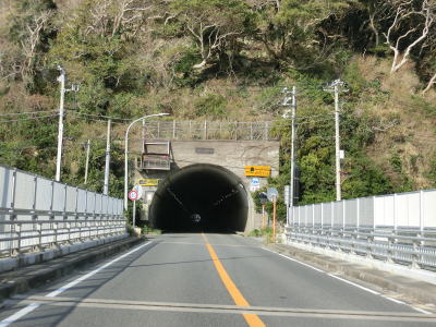 | 千葉r285内浦交差点を通過して内浦湾に沿って左カーブを曲がり、途中で内浦橋を渡る。安房小湊駅の南西で再びr285との県民の森入口交差点を通過する。r285に指定されているのは県民の森の南までだが、分断県道ではなく内浦山公園線という路線名が示す通り、国道と県民の森を繋ぐ県道である。 県民の森入口交差点の直後に新実入トンネルをくぐる。供用されたのは2019年10月25日と比較的新しいトンネルで、実入トンネルも通行可能である。なお、実入トンネルの歩行者・自転車用トンネルの側壁には魚の絵が描かれており、水族館トンネルをして知られている。 |