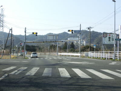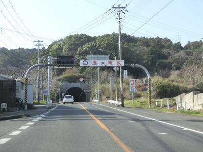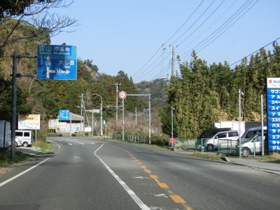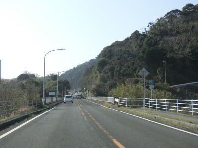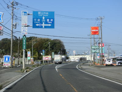 | 加茂交差点からも勾配もカーブもほとんどない2車線道路が続いている。交通量は多少増えているものの流れは良く走りやすい。緩やかな上り勾配が始まり、緩やかなカーブをいくつか曲がった後に名もなき峠を越えると館山市に入る。 | ||