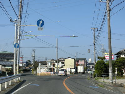 | 家屋が建ち並ぶ間を歩道のない2車線道路で走っていると千葉r186下三原交差点を通過し、里見橋の西詰で千葉r297フラワーライン入口交差点を通過する。r297は交差点の名称が示す通りフラワーラインの入口であり、野島崎を含む房総半島の南端部の入口でもある。 フラワーライン入口交差点からは海岸線を離れて内陸部へと進む。センターライン付きの2車線道路が続くものの歩道は設置されておらず狭苦しさを感じる。南三原駅付近からは歩道が設置されており車線幅に余裕も出てくる。戸前跨線橋でJR内房線の上を通過し、緩やかなアップダウンのある2車線道路を快走する。 |