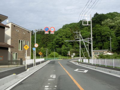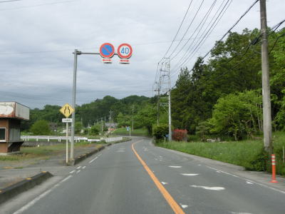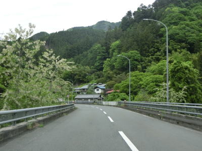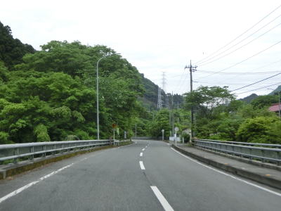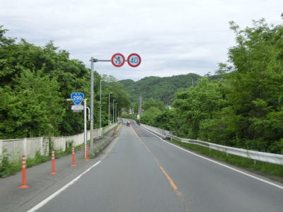 | 日向橋の直後の左カーブを曲がって大橋を渡って少し走るとセンターラインがなくなって1.5〜1.8車線幅道路になる。道幅は狭いが交通量が少ないためさほど走りにくさは感じない。小金平橋からは勾配がややきつくなるが、道幅は2.0〜2車線と広くなる。 | ||