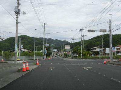 | 泉田交差点からも家屋が断続的に続く中を走る。歩道は片側にしかないが交通量が少なければそれなりに気持ち良く走る事ができる。緩やかな右カーブを描きながら信濃石交差点を通過するが、小鹿野町役場と案内されている町道はR299の旧道である。信濃石交差点からは黒土海バイパスを走るが、これまでと同じ対面2車線道路ながら直線的で見通しが良く走りやすい。 | ||