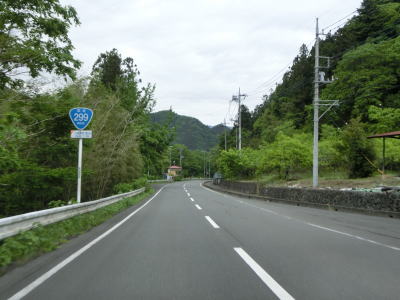 | ほとんど勾配がなくカーブも緩やかなものが多い2車線道路を走る。幅員減少の警戒標識が設置されているが、路側帯がなくなる程度であり車線自体の幅は変わらない。沿線の家屋が途切れた後に小鹿野町に入る。 | ||