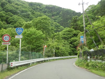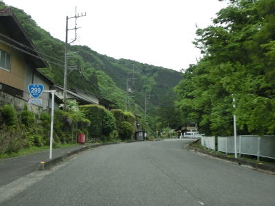 | 瀬林集落を通り過ぎて少し走るとセンターラインが復活して2車線道路になる。間物沢川に沿ったカーブが少なく緩やかな勾配の道路を下って行く。センターラインがなくなってやや急な左カーブを曲がると閉鎖用ゲートを通過する。その後道幅は1.5車線と狭くなって三津川集落を通り抜ける。 古鉄橋で神流川を渡った北詰でR462交差点に突き当たり、左折して佐久穂・上野方面に進む。R462の起点は長野県佐久市にあり、R299と重複して十石峠を越えている。なお、この交差点より起点側のR462は全て他の上位国道に重複しており、その距離は55kmに及ぶ。 |