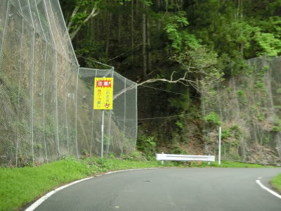 | 坂本集落を通り抜けている旧道との交差点付近で異常気象時通行規制区間に入る。県境を挟む4.9kmの区間が連続雨量120mm超で通行止になる。集落が途切れると同時に急カーブが多くなる。2車線道路ではあるもののセンターラインが消えかけている場所が多い。 | ||