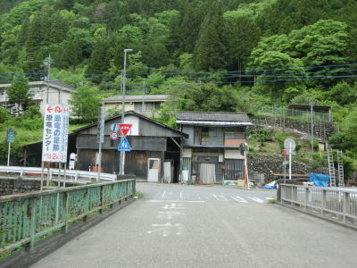| 赤平川の左岸の2車線道路を走っていると三ヶ原集落を過ぎるとセンターラインがなくなり道幅も狭くなる。桃木平集落の手前の桃木平橋を渡り終えるとセンターラインが復活する。 | ||