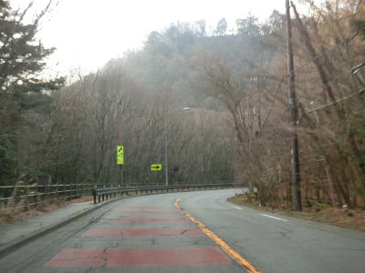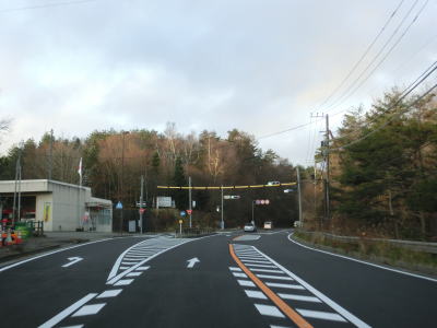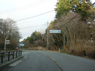 | 道の駅からも勾配とカーブの緩やかな2車線道路が続いている。勾配が緩やかなため意識しづらいが標高1000m近い高所である。山梨r71ひばりが丘交差点を通過して少し走ると紅葉台というレストハウスのある展望所に至る道路との交差点を通過する。紅葉台では富士山のみならず南アルプスも望む事ができるが、未舗装の狭路を通らなければならない。 | ||