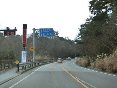 | 精進湖の南東でR139・R358赤池交差点を通過する。この交差点はR358の終点であり、右折して甲府方面に進むと精進湖の東側を走って精進湖トンネルをくぐると甲府市に入る。平成の大合併以前は精進湖トンネルの南北どちらも上九一色村域であった。 赤池交差点からもR139との重複区間が続く。交差点から約200mで山梨r702との交差点を通過するが、ガードレールの切れ目がなく案内標識も設置されていないため県道が交差しているようには見えない。それもそのはず、r702は富士精進線という路線名の登山道である。終点はR300(実質R139)との交差点だが、起点は富士山の五合目である。 |