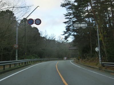 | 富岳風穴前交差点を過ぎると直線道路を緩やかに下って行き、標高は徐々に下がる。緩やかな左カーブを曲がっていると山梨r21交差点を通過する。r21は西湖や河口湖の北を通っている県道である。r21交差点からも多少カーブがあるものの走りやすい2車線道路が続いている。青木ヶ原樹海を通り抜けているが、整備状況は良く、見通しも良好である。 | ||