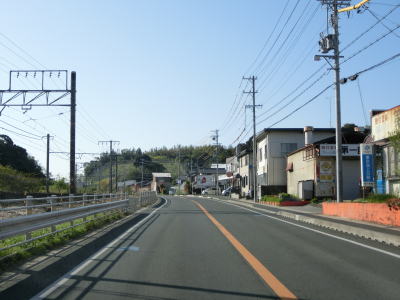 | JR東海道本線と並走していると沿線の家屋が途切れた所で東海道新幹線の下をくぐる。右カーブを曲がって東海道本線と離れた後に泉町交差点に至り、左折して浜松・国道1郷方面に進む。直進の市道はR1の旧道である静岡r417に行く事ができるが大型貨物車両は通行禁止である。 | ||