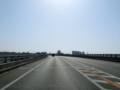 | 在来線とともに新幹線とも近い距離で並走しながら真東に向かって走っていると西浜名橋で新弁天島に渡る。並走しているJR東海道本線と東海道新幹線の他に歩道用の橋や競艇新大橋と合計5本もの橋が架かっている。北を並走している東海道新幹線の北に市境があり、島の南3分の1が湖西市で北3分の2が浜松市である。 | ||