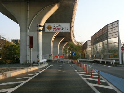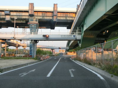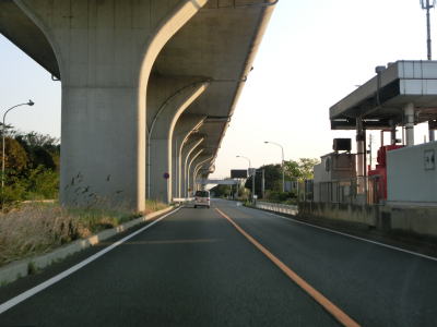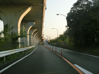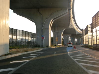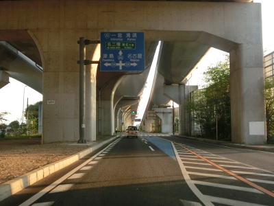 | 名古屋第二環状道の本線と甚目寺南ICのランプ橋の間を走っているとあま市に入る。そのまま名古屋第二環状道の東側を走っているとやや急なS字カーブを曲がって名鉄津島線の甚目寺6号踏切を通過する。南向き車線も名古屋第二環状道の西側にあり橋脚を挟んで分離している訳ではない。踏切を過ぎてすぐにS字カーブを曲がって名古屋第二環状道の東側に戻る。 | ||