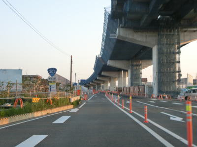 | 愛知県名古屋市の西武に位置するR1かの里東交差点がR302の起点である。環状道路という特性から終点もこの交差点であり、一部に有料道路区間が存在するが環状道路として成立している。同様の例に東京環状と呼ばれるR16があるが、こちらは東京湾を横断する区間が分断されている(東京湾フェリーが就航しているが港と端点の位置がずれている)。 かの里東交差点からR302の岐阜方面に進むと対面2車線道路とを走る。並走しているC2名古屋第二環状道が建設中であり、その下を通っているR302も交通規制の影響を受けている。名古屋第二環状道が供用された後にR302も整備されて橋脚を挟んで片側2車線道路になるものと推測される。 |