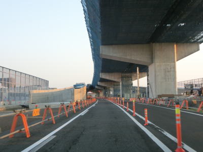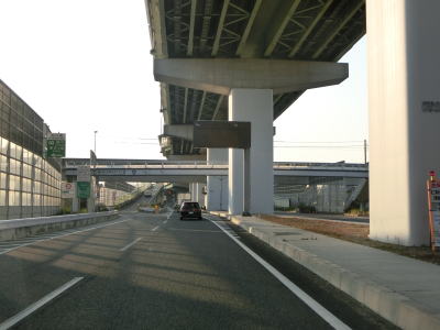 | 清須西ICの流入路と流出路の接続部の間で市境を通過して清須市に入る。周辺には水田が広がっているが、遮音壁やら植栽やらでその様子を窺う事はできない。名古屋第二環状道の南東側を走っているとS字カーブを曲がった後に名鉄名古屋本線の新清須7号踏切を通過し、その先でもS字カーブを曲がる。 | ||