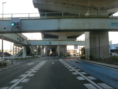 | 名古屋第二環状道の東側を走っていると愛知r126新居屋東交差点を通過する。交差点の前後は甚目寺ICのランプ橋があるため本線を含めて3本の高架の下を通っている。愛知r128方領東交差点を通過した直後に清須西ICの流入路が分岐する。 | ||