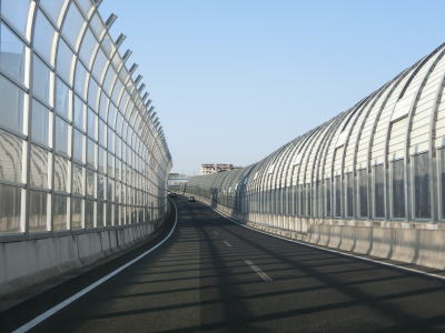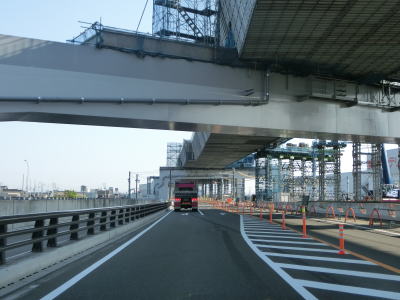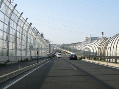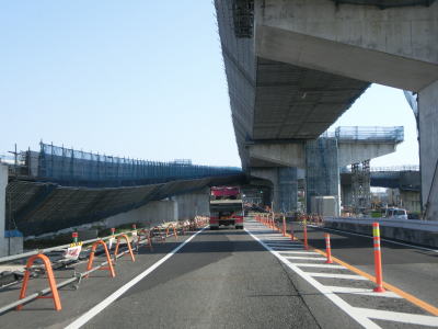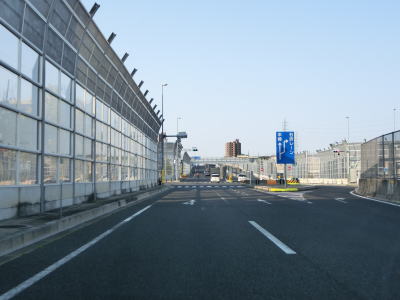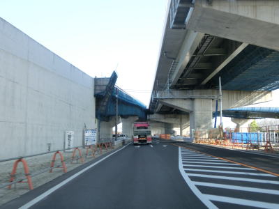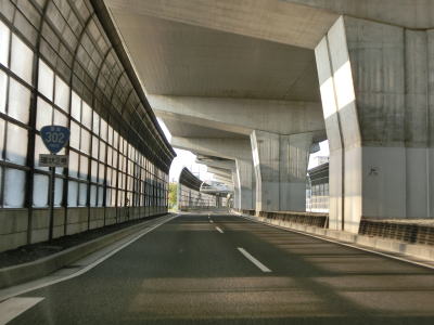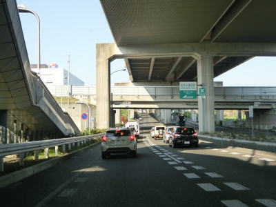 | 83.ランプの跨道橋と名古屋臨海鉄道下を通る | 84.E1A伊勢湾岸道の東海ICに入る | |