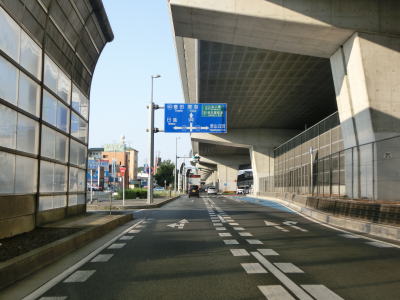 | 梅之郷交差点を過ぎると対面2車線道路となり、(仮称)名四西ICの流入路と本線高架の間を走る。その後、緩やかなS字カーブを曲がると名古屋第二環状道の西側に移って日光川の左岸を走る。上り勾配の右カーブを曲がると飛島大橋を渡って名古屋市港区に入る。 | ||