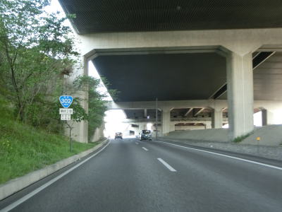 | 上社JCT南東交差点のすぐ先で上社南ICへの流入路が分岐する。以降は引き続きC2名古屋第二環状道を挟んた片側2車線道路を走る。遮音壁に挟まれているため景色が全く見えない。また、遮音壁の外側に側道があるが国道には指定されておらず、大きな交差点では分断されているため長い距離の移動のための車線としては利用できない。愛知r217高針橋東交差点の直後に愛知r59を横切るが、r59自体はR302の本線ではなく側道にしか接続していないようである 緩やかな上り勾配の片側2車線道路を走っていると高針JCTの傍を通過する。このジャンクションはC2名古屋第二環状道と名古屋高速2号東山線が接続している。他のジャンクションとは異なって近くにインターチェンジが設定されていない。 |