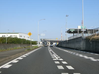 | E1A伊勢湾岸道の大府ICを通過を過ぎると右端車線が減少して片側2車線道路に戻る。伊勢湾岸道の高架下の片側2車線道路を走っていると愛知r55日向根交差点を通過して緩やかな勾配を上る。 | ||
