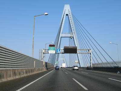 | 102.(仮称)名四西IC | 103.S字カーブで名古屋第二環状道の東に移る | 104.飛島大橋 |