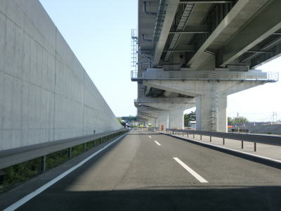 | 97.建設中のC2名古屋第二環状道と並走 | 98.緩やかなS字カーブあり | 99.インターチェンジも建設中 |