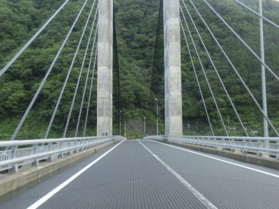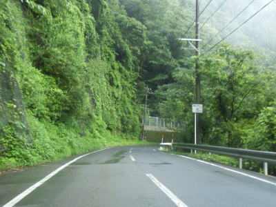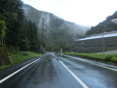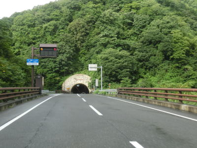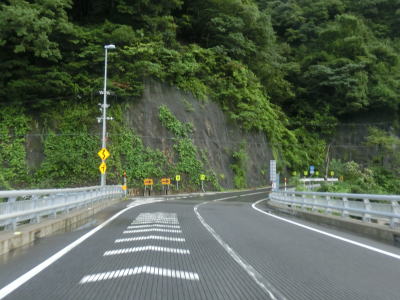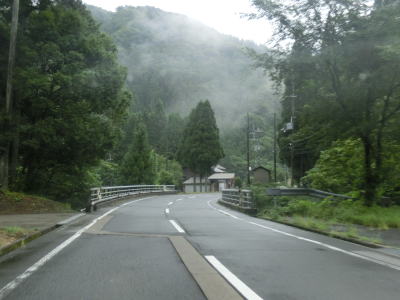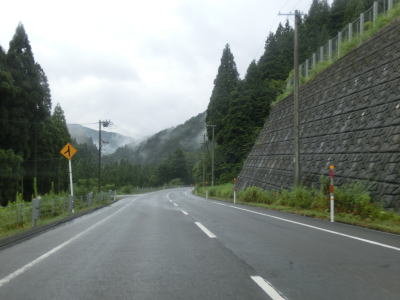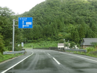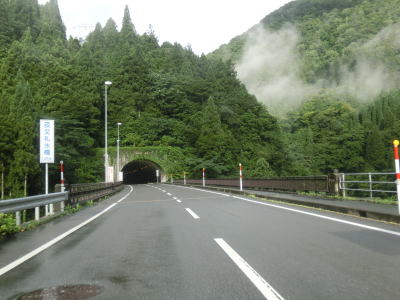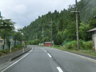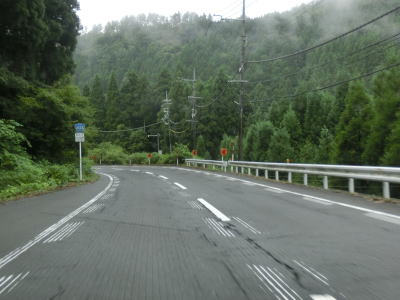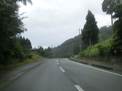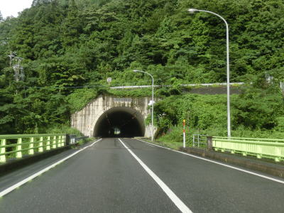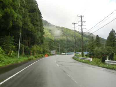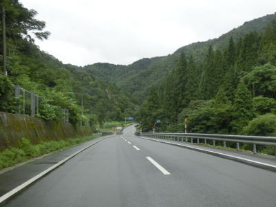 | トンネル上を旧道が通っている高山谷トンネルを出てから程なくして右にカーブして進行方角を北に転じ、坂内川を何回か渡りながら北上する。県境に近い、かなりの山間部だが勾配・カーブともに緩やかな2車線快走路で走りにくさは微塵も感じない。 | ||