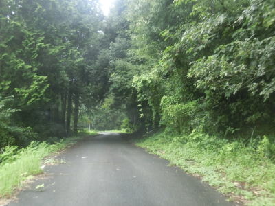| 池天隧道を出た直後は比較的日当たりが良いせいか1.8車線幅をフルに使うことができるが、進むにつれて日当たりが悪くなり路肩の堆積物が増えて実質的な道幅が狭くなる。薄暗い杉林を走っていると視界が開けた所で市道らしき道路との十字路を通過する。R303は直進だが、交差点直後が右急カーブなので一般的に考える。直線というイメージは薄い。その後も1.5〜1.8車線の狭路が続く。 | ||