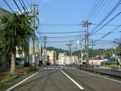 | 下り勾配が終わって平坦になると同時に沿線の建物が増える。芦原温泉という事もあって普通の家屋に交じって宿泊施設もある。福井r5との舟津口交差点を右折した直後に福井r152交差点を通過する。三国競艇場口交差点までは狭苦しい2車線道路で家屋密集地を走り抜ける。 | ||
