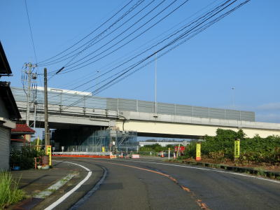 | 右カーブを曲がって高橋を渡った直後に北陸新幹線の高架橋をくぐってIRいしかわ鉄道のアンダーパスをくぐる。アンダーパスから出た直後の市道との大聖寺東町交差点は直進だが、右にカーブしながらの通過となる。 | ||