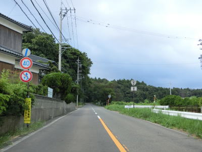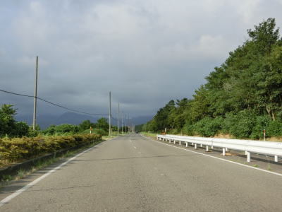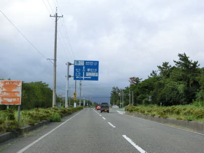 | 北潟東交差点を過ぎると沿線に家屋が途切れずに続いており、交差点以北に比べてカーブも少なくなる。北潟湖から離れてからもカーブの少ない2車線道路が続いており、交通量が少ない事もあって快走できる。 | ||