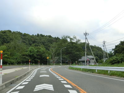 | 大聖寺関町交差点を過ぎると山裾を走って石川r141交差点を通過する。大聖寺関町交差点はr141の旧道との交差点で、案内標識は残されているもののヘキサは消されている。r141交差点唐は緩やかな勾配を上った後にS字状のカーブを描きながら下る。 | ||