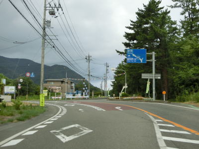 | 旧道らしき市道とのY字路は道方向へ進む。以前(R365を走行した2017年4月30日)は交差点の手前にドットが描かれていて道なりという感じだったが、今回はそれがないためどちらに進むか少々判断に迷うところである。 梅浦大橋を渡ってやや急な右カーブの途中でR365・R417梅浦交差点を通過する。ここでR365が福井・織田方面に分岐するが、同時にR417が重複してくるためまたしても完全な単独区間にならない。武蔵交差点からは約108km、黒瀬交差点からは約63kmである。なお、ここから重複するR417は終点の桜橋交差点まで全てR305に重複している。 |