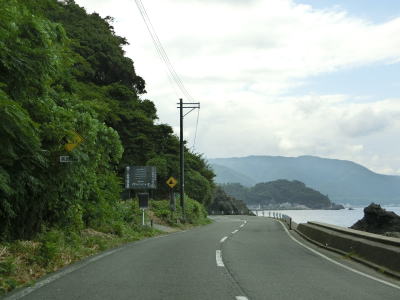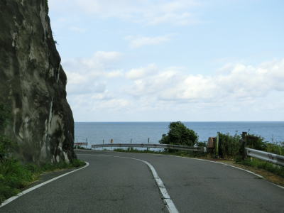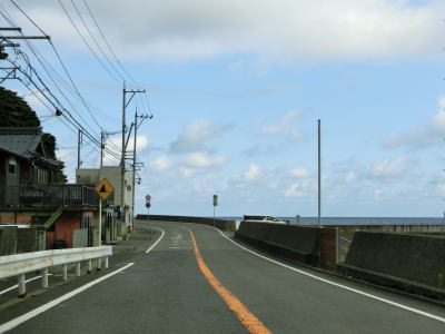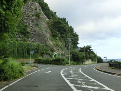 | 168.越廼バイパス | 169.越廼バイパスを過ぎると狭苦しい2車線道路になる | 170.海面とは高低差あり |
