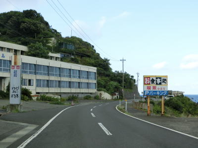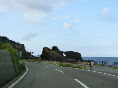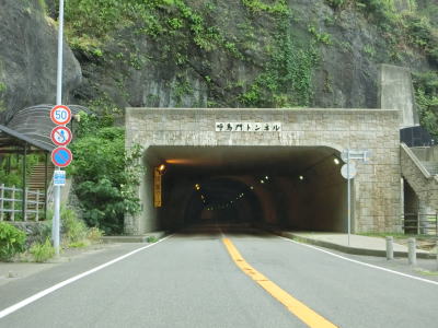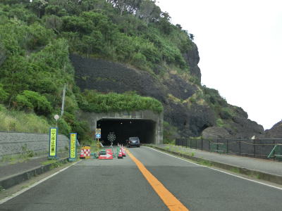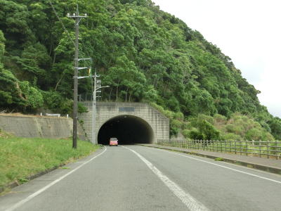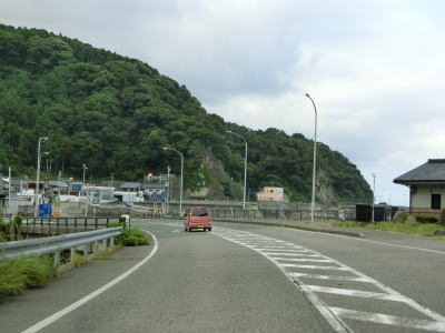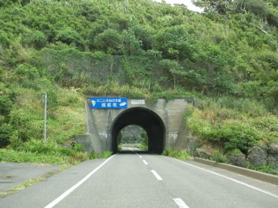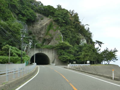 | 漁港だけでなく海水浴場もある鮎川町集落を走っていると前方に松ヶ鼻隧道が見えてくる。国見小・中学校の前を通り過ぎた直後に松ヶ鼻隧道をくぐる。名称が“隧道”となっているが1992年に開通(拡幅?)されたトンネルで山側に歩道が設置されている。松ヶ鼻隧道を出ると白浜漁港を擁する白浜町集落を通り抜ける。 | ||