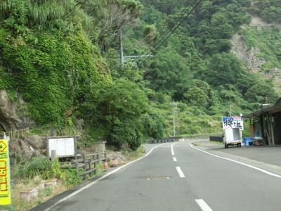 | 足見滝は国道のすぐ傍にあり、走行中ですら視認する事ができる。滝の向かい側に駐車場があるが飲食店の利用客用の可能性が高い。その後もしばらくは集落のない断崖を走るが、センターライン付きの2車線道路なので走りにくさは殆ど感じない。 | ||
