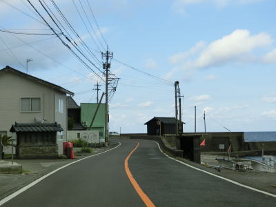 | 居倉漁港を擁する居倉町集落を通り抜けた後にやや急な勾配を上る。以降はやや標高の高い場所を走っているため集落はあっても漁港は置かれていない。観光客向けの店の他に旅館や民宿がいくつかある。 | ||