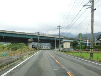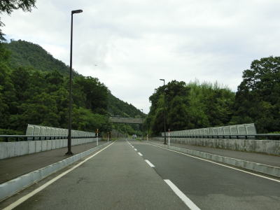 | 甲楽城集落の名部で緩やかな上り勾配が始まって福井r206甲楽城交差点を通過した後に甲楽城高架2号橋を渡る。その後も緩やかな上り勾配が続き、下りに転じた直後に御台場橋を渡る。その後は小刻みにカーブをしながら下り続ける。 | ||