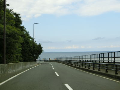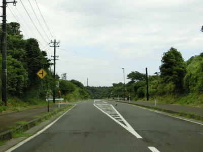| 旧道と合流してからもしばらくはセンターライン付きの2車線道路が続くが、茂原人工海水浴場の手前で1.8車線幅道路になってしまう。その後はセンターラインがあったり広くなったりするがどれも距離が短く離合可能箇所程度の機能しかない。 | ||