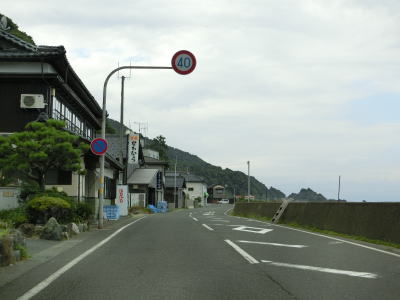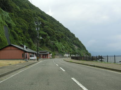 | 南越前町に入ってからは海岸線沿いの2車線道路を快走する。沿線に集落はないが旅館や食事処がいくつか建っている。ただし、廃業して廃墟となっているものも見られる。法面の土砂流出の対策で歩道部分に土嚢が置かれている糠ロックシェッドをくぐり、その先で糠海水浴場の傍を通る。 | ||