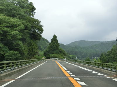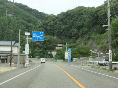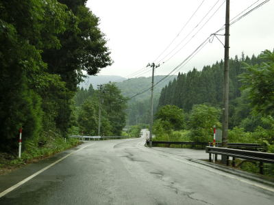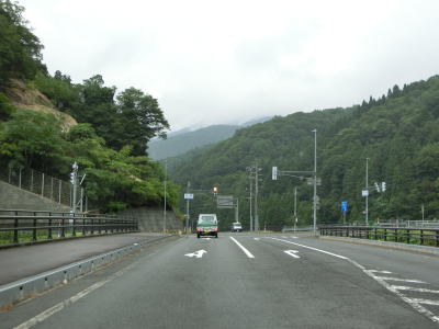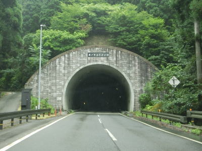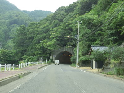 | 桜橋交差点から約1.9kmでホノケ山トンネルに入る。全長2709mと長大なトンネルで、町境を跨いでいるため南越前町に入るが、越前市域を1.0km程度通っている。トンネルを出ると6%勾配を下って行く。センターラインはほぼ消えているが、2車線道路なので走りにくさは感じない。北陸新幹線と交差しているが、新北陸トンネルの上であり視認する事はできない。 | ||